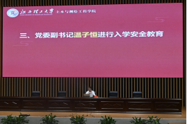 最后,温子恒围绕大学校园生活管理、学生日常生活规范、学生资助政策解读及安全教育四大主题展开阐述。他结合真实案例,为新生明确在校期间的行为准则与生活规范,帮助新生树立规则意识;同时详细介绍国家及学院的各项学生资助政策,确保家庭经济困难学生能顺利完成学业;在安全教育环节,重点讲解电信网络诈骗的常见手段与防范技巧,通过案例分析提升新生的安全防范意识与自我保护能力,为新生校园生活筑牢安全防线。