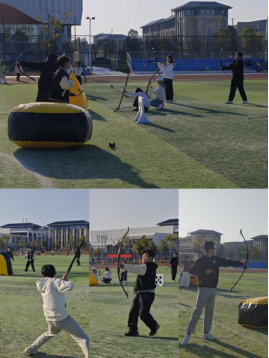 在摸石过河项目现场,同学们踩着“石头”小心翼翼地向终点进发,时而稳步前行,时而快速切换,一旁的队友们纷纷加油呐喊,现场笑声、欢呼声此起彼伏。攻防箭项目中,大家身着防护装备,手持特制弓箭,在规定区域内展开激烈对抗,既有进攻时的果断勇猛,也有防守时的默契配合,充分展现了给排水专业学生的团队协作意识。