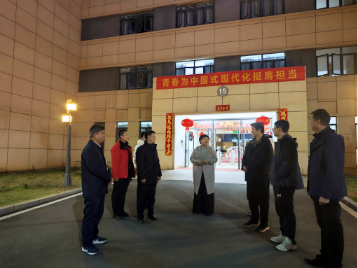 1月4日晚,校党委常委、副校长宁洁一行深入我院15栋“一站式”学生社区,聚焦社区育人阵地建设、学生管理服务优化、思政教育融入日常等开展实地调研走访,精准掌握“一站式”学生社区建设成效,为后续育人工作提质增效精准把脉。党委学生工作部部长刘传立、学院党委书记贾群燕、正茂园各学生社区所属学院党委副书记及辅导员代表陪同调研。