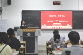 为深入贯彻共青团改革部署要求,进一步夯实共青团基层工作根基,激发广大青年参与团课教育的主动性与积极性,切实提升共青团“为党育人”工作成效,10月19日,我院在阅道楼122举办了以“青春为中国式现代化挺膺担当”为主题的微团课大赛。学院学工办副主任兼团委副书记尹嫒琳子、辅导员左华伟和孙丰参加并担任评委,全院各班团支委到场观摩学习,共同感受青春与理想碰撞的思想盛宴。
