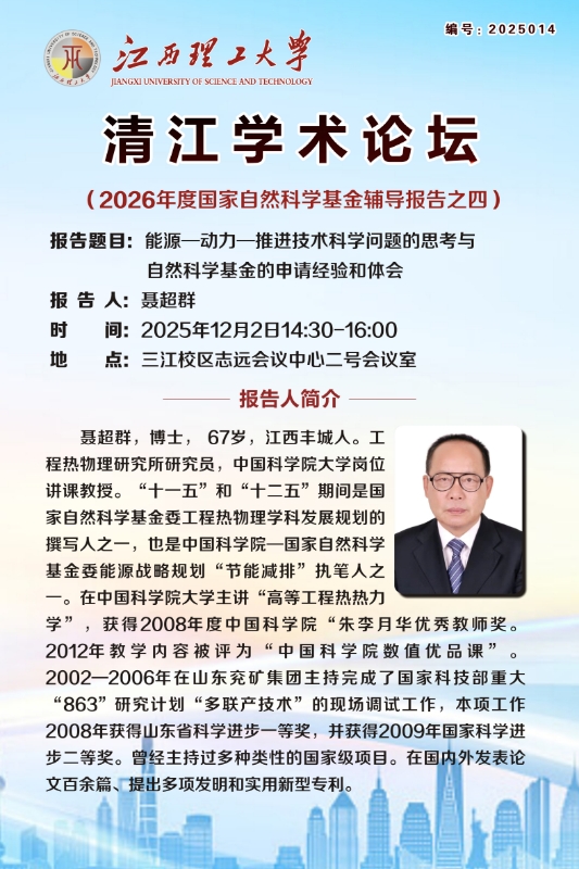 【来源:【清江学术论坛】能源-动力-推进技术科学问题的思考与自然科学基金的申请经验和体会 | 发布日期:2025-11-24 】