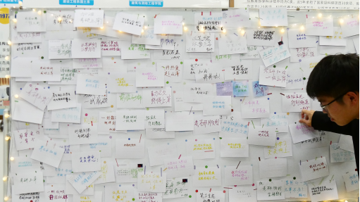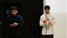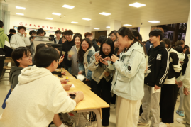 文韵区内,“声动暖冬 砼心接唱”环节堪称全场“气氛发动机”,5人组成的小队围站一圈,前一人歌声刚落,下一人便需在10秒内精准接唱。当熟悉的校园民谣与流行金曲旋律响起,偶尔的忘词小插曲引得全场善意哄笑,而完美衔接的瞬间则让欢呼声响彻中庭,默契在歌声中悄然升温。一旁的考研祝福墙前,始终排着长队。即将踏上考研战场的学子们,在彩色卡片上写下“一战成硕”“顶峰相见”的期许,也有低年级同学认真写下“学长学姐加油,你们超棒的”暖心寄语。一张张卡片贴满墙面,笔墨间的温情与鼓励,让这个寒冬多了份直击心底的柔软。此外,“智汇寒冬 砼知问答”将专业小知识与生活小常识融入题目,“同心解码 砼乐比划”则考验着伙伴间的理解与表达,脑力博弈与协作乐趣在此完美融合。