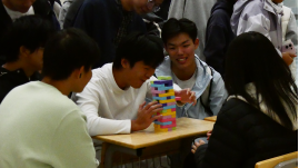 相较于文韵区的温情灵动,健动区的氛围则更为热血沸腾。“暖冬舒展 砼志拓远”项目中,四人小组手拉手围成圈,需在不松手的情况下协作取到远处的物品,有的小组踮脚接力,有的小组灵活钻圈,信任与配合是完成挑战的唯一密钥。“逐光续航 砼速运球”里,学子们专注地颠着乒乓球向前奔跑,眼神紧紧锁定小球,生怕一个疏忽让“战果”前功尽弃;“巧抽积木 砼心稳塔”则考验着耐心与策略,参与者屏住呼吸轻轻抽走积木,围观者也随之紧张得不敢出声,积木塔晃动的瞬间总能引发一阵惊呼。最激动人心的当属“劲撼寒冬 砼心拔河”,随着裁判一声哨响,绳结两端的学子们瞬间后仰发力,加油声、呐喊声与绳子摩擦声交织在一起,带队老师也忍不住加入助威队伍,整个中庭被热血与激情包裹。每完成一个项目,学子们就能获得一枚专属印章,这些小小的印章不仅是参与的证明,更是兑换惊喜好礼的“硬通货”。