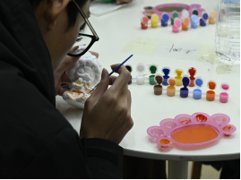 活动伊始,工作人员早已做好充分准备,有序为参与同学分发素白石膏坯、各色颜料、画笔等创作工具。为帮助同学们更好地完成作品,工作人员还围绕色彩调和技巧、纹样设计思路、笔触运用要点等关键内容进行了细致讲解与演示。本次创作的自由度极高,素材选择丰富多元——从憨态可掬的生肖造型到寓意吉祥的传统符号,从清新淡雅的国风配色到大胆前卫的个性涂鸦,同学们可完全依据自身喜好自由发挥,创作空间十足。在正式创作前的交流环节,大家纷纷敞开心扉,分享着对新年的美好期许:有的同学计划在作品中融入“福”字、灯笼等经典新春元素,传递传统年味;有的则打算采用撞色设计展现青春活力,打造专属个性作品。