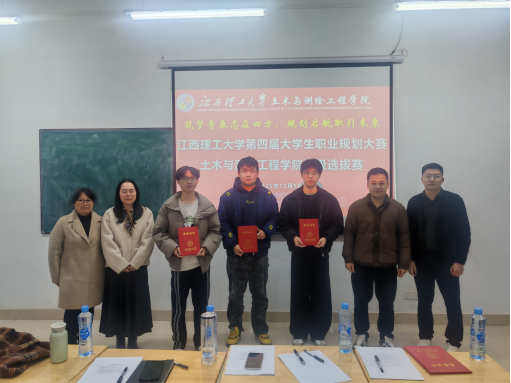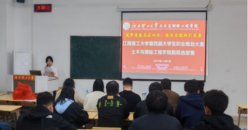 为强化学生职业规划意识,提升综合素养与就业竞争力,12月5日,江西理工大学第四届大学生职业规划大赛土木与测绘工程学院院级选拔赛在三江校区(东园)笃实楼501顺利举办。本次大赛历经网络初审严格筛选,最终从196名参赛选手中脱颖而出的16名选手,齐聚现场展开路演角逐。