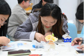 活动伊始,面对镊子、剪钳、釉料碗等数十种陌生工具,不少同学面露茫然,手指不自觉地摩挲着衣角,眼神里满是好奇与为难。“大家看,这根细如发丝的铜丝,就是掐丝珐琅的‘骨架’……”负责人的讲解声打破了现场的静谧。随着PPT上一幅幅精美珐琅器图片展示,从元代异域传入的初始模样,到明清时期宫廷御用的鼎盛辉煌;从“金丝为骨、釉彩为魂”的工艺精髓,到点蓝、烧蓝、打磨等繁复工序的逐一拆解,同学们的眼神逐渐发亮,原本的拘谨渐渐消散,纷纷拿出笔记本认真记录,脸上浮现出跃跃欲试的期待神情。