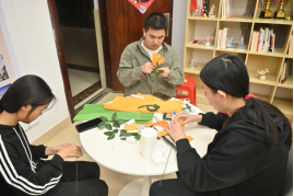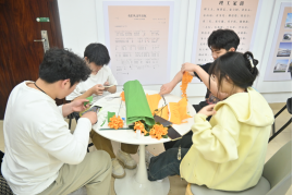 活动伊始,志愿者提前布置好活动现场,整齐摆放好素纸、剪刀、胶水、铁丝等手工材料,温馨的氛围中透着几分庄重。工作人员首先向同学们介绍了清明的由来、传统习俗以及文明祭扫的重要意义,讲解了纸菊花的制作步骤与技巧,从纸张的裁剪、花瓣的折叠,到花蕊的制作、花枝的固定,每一个细节都耐心示范、细致讲解,确保每位同学都能掌握制作方法。随后,同学们领取材料,纷纷投入到手作之中,活动室瞬间安静下来,唯有纸张翻折的沙沙声、剪刀裁剪的清脆声,交织成一曲温柔的春日乐章。